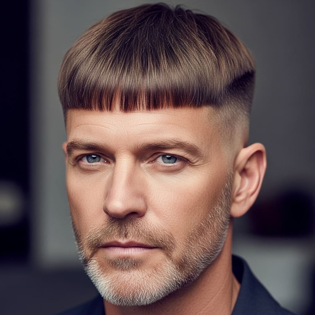 Pro tip: Use matte clay and brush hair forward daily to keep that clean line.